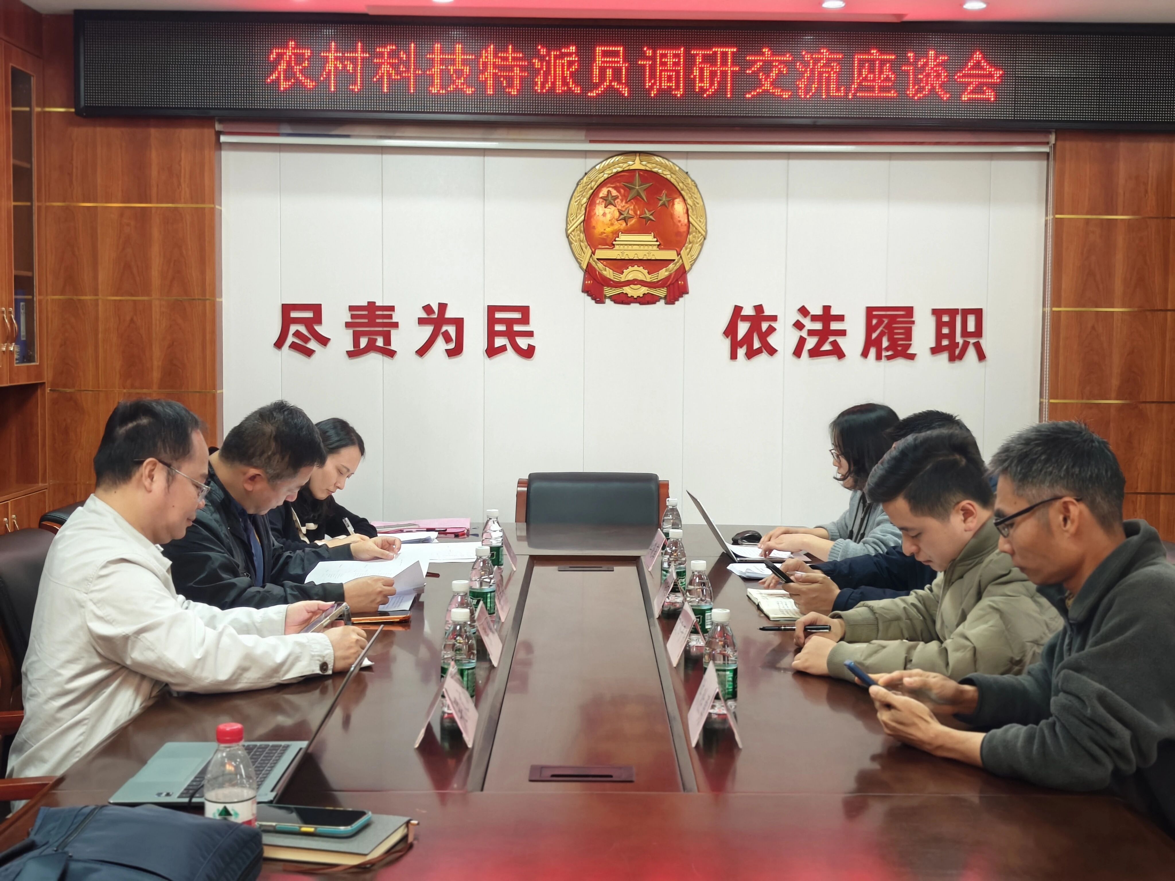 在长岐镇,调研组先组织座谈交流会,长岐镇特派员团队负责人围绕团队组建、人员配置、帮扶成效、现存困难及下一步计划作详细汇报,重点介绍了农技指导、特色产业赋能、基层人才培育等阶段性成果。调研组梳理工作堵点,与当地人员深入交流并达成工作共识。随后,深入田间地头与特色产业基地,实地察看科技帮扶落地成效、农产品提质进展。